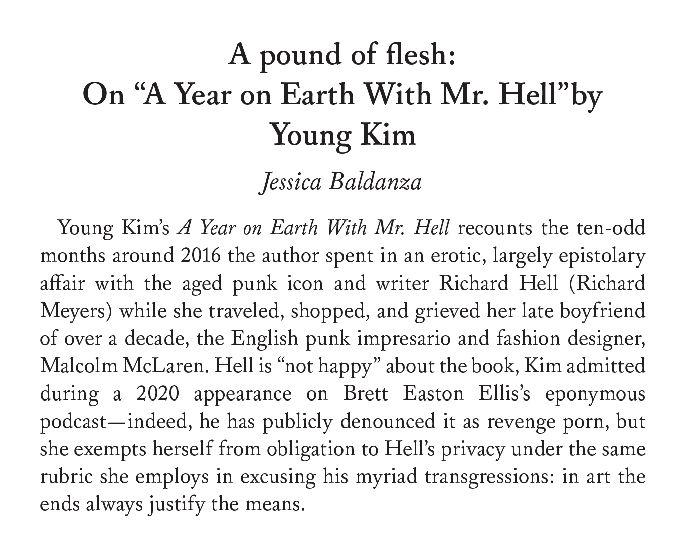 A pound of flesh on “A Year on Earth With Mr. Hell” by Young Kim